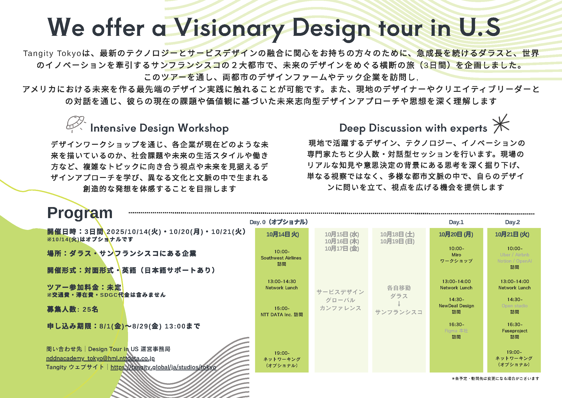 | 2025/10/14・20・21 ※オプショナルツアー含む | 現地(ダラス・サンフランシスコ) |